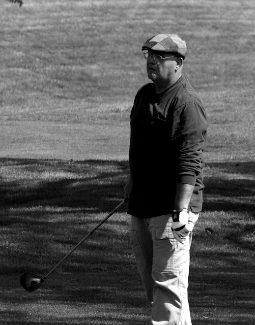 -Of note: I tried to hit Dick Lemmon's new driver last Saturday (a left handed model, seeing he bats from the other side of the plate). Had Karry Stoll standing there saying I wasn't gonna hit it (thanks, Karry...) and JD Simmons standing there saying 'I bet he does' (thanks, JD). Missed completely on the first two swings and then tagged it just barely on the third - got a weak roller to the first baseman. Did spend some of my Sunday morning working on hitting irons from the 'wrong' side - a 5 iron, a pitching wedge. Wouldn't say I'm proficient though was making contact regularly.