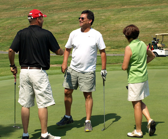 Thanks to Short Jeffers for all the work he put in to make the event a success (including his blunt and forceful and graphic instructions to the group before heading out for the nine in the dark) and to Mitch Jeffers for doing the grilling between the two nine holes - with capable help from Mom Shirley. Fifty-three players tried the the day-night doubleheader and, I expect, the majority of them were getting their first taste of glow ball golf (that includes me - did like the arcing of the glow balls in the night sky). Thanks to all the golfers for being responsible throughout the night with no reported injury to the golfers - that's amazing as we really didn't know what we were doing out there, didn't know where the balls were going to go and couldn't see anybody out there to avoid. It was easier to see the glow balls though - guess that made it easier to step aside though don't recall ever having to. All in all, a good time was had by all.